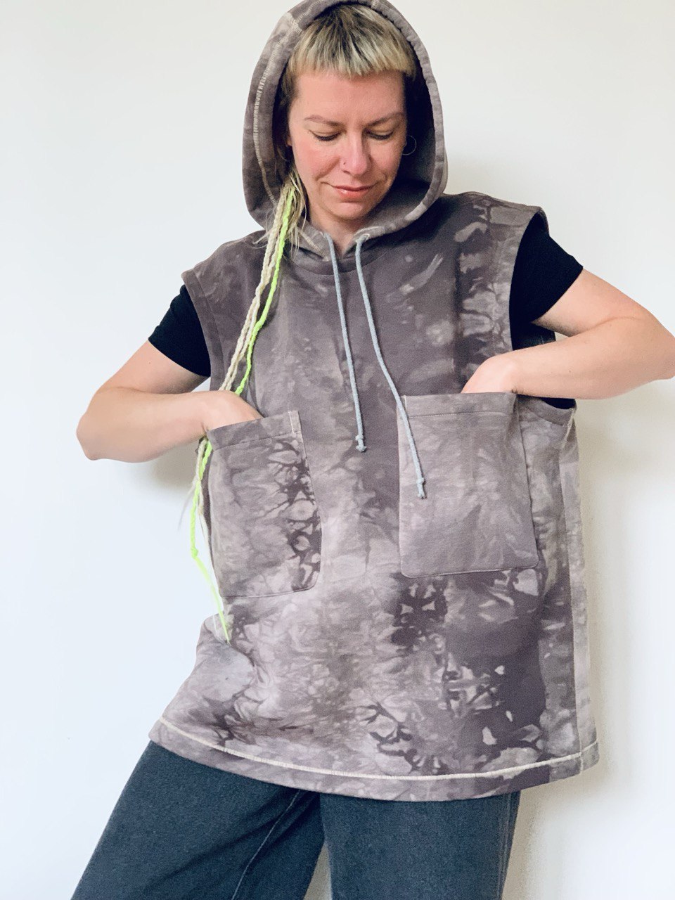 мармурова жилетка з каптуром. тепла, пошита з тканини футер з начосом (70% бавовна, 30% поліестер)