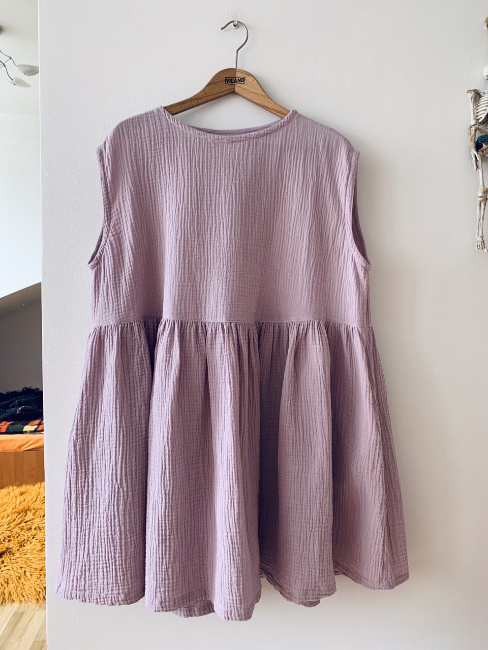 коротке і дуууже просторе муслінове платтячко блідо-лілового кольору